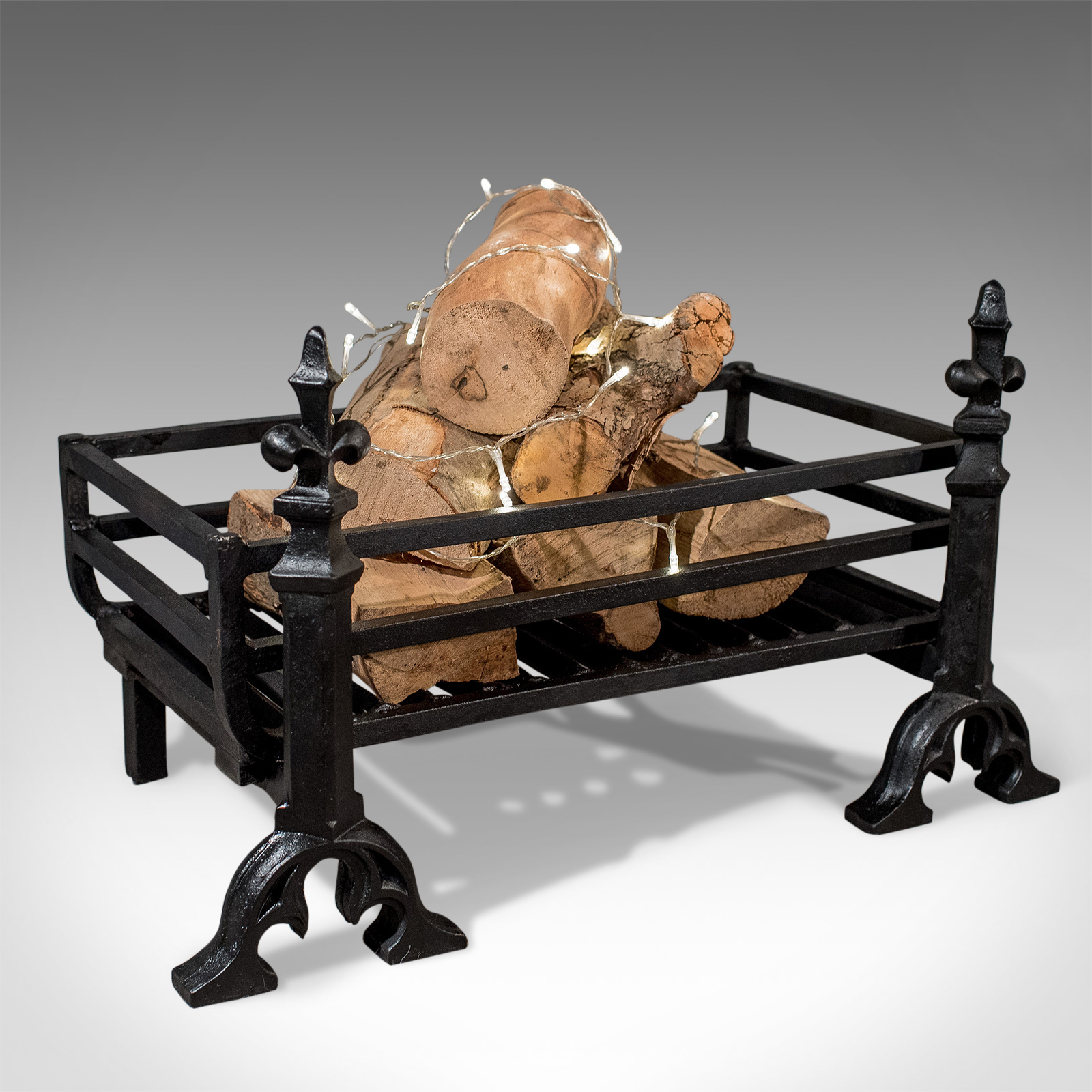 Antique Fire Grate Hearth Basket & Andiron Dogs Cast Iron Victorian c.1900 (1 of 1)
