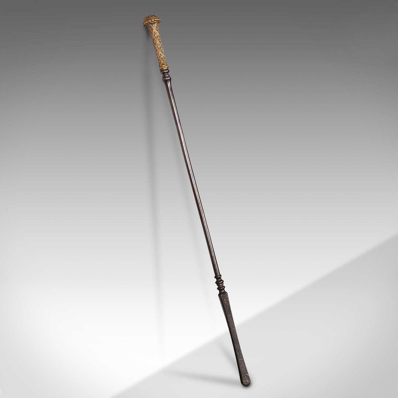 Antique Fire Poker, English, Cast Iron, Brass, Decor, Fireside Tool, Georgian