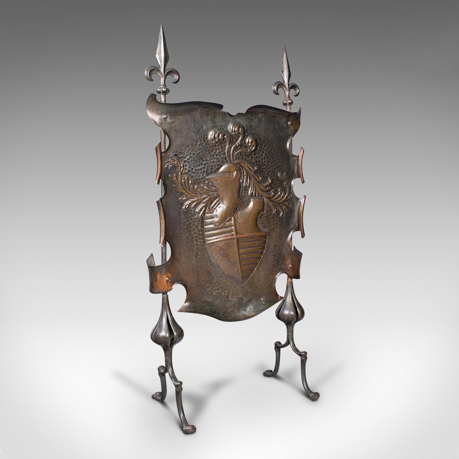 Antique Fire Screen, French, Iron, Fireside Shield, Art Nouveau
