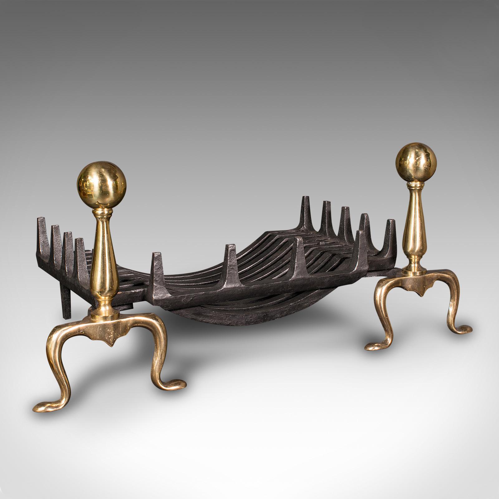 Antique Fireplace Grate, English, Cast Iron, Fire Basket, Andirons, Edwardian