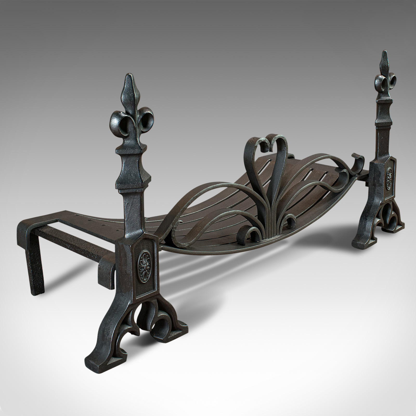 Antique Fireplace Set, English, Fire Grate, Andirons, Art Nouveau, Victorian