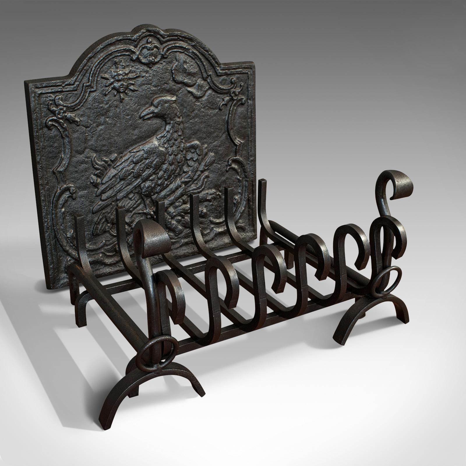 Antique Fireside Set, English, Fire Basket, Andirons, Back, Victorian c.1900