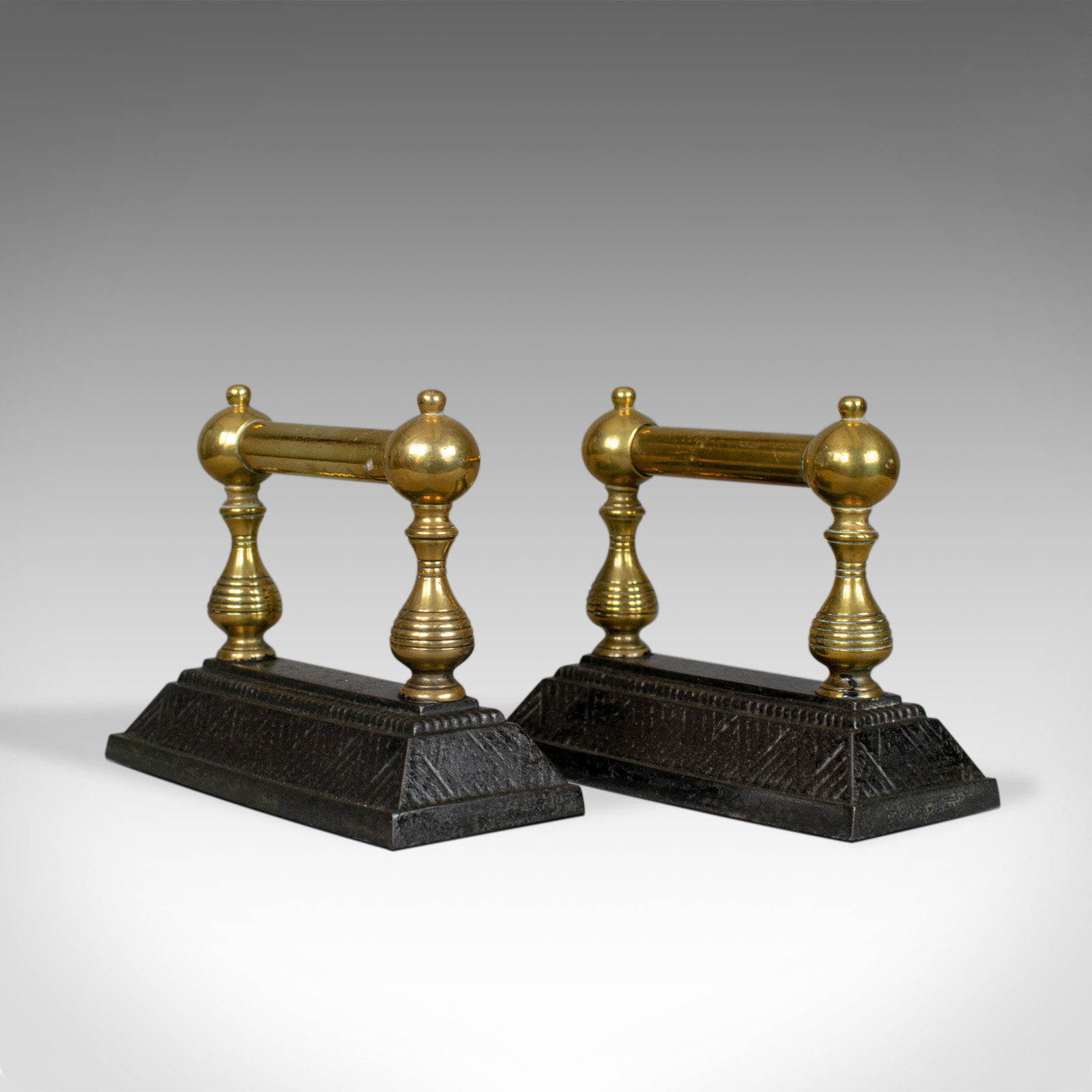 Antique Fireside Tool Rests, Victorian, Brass, Iron, Classical Revival c.1890