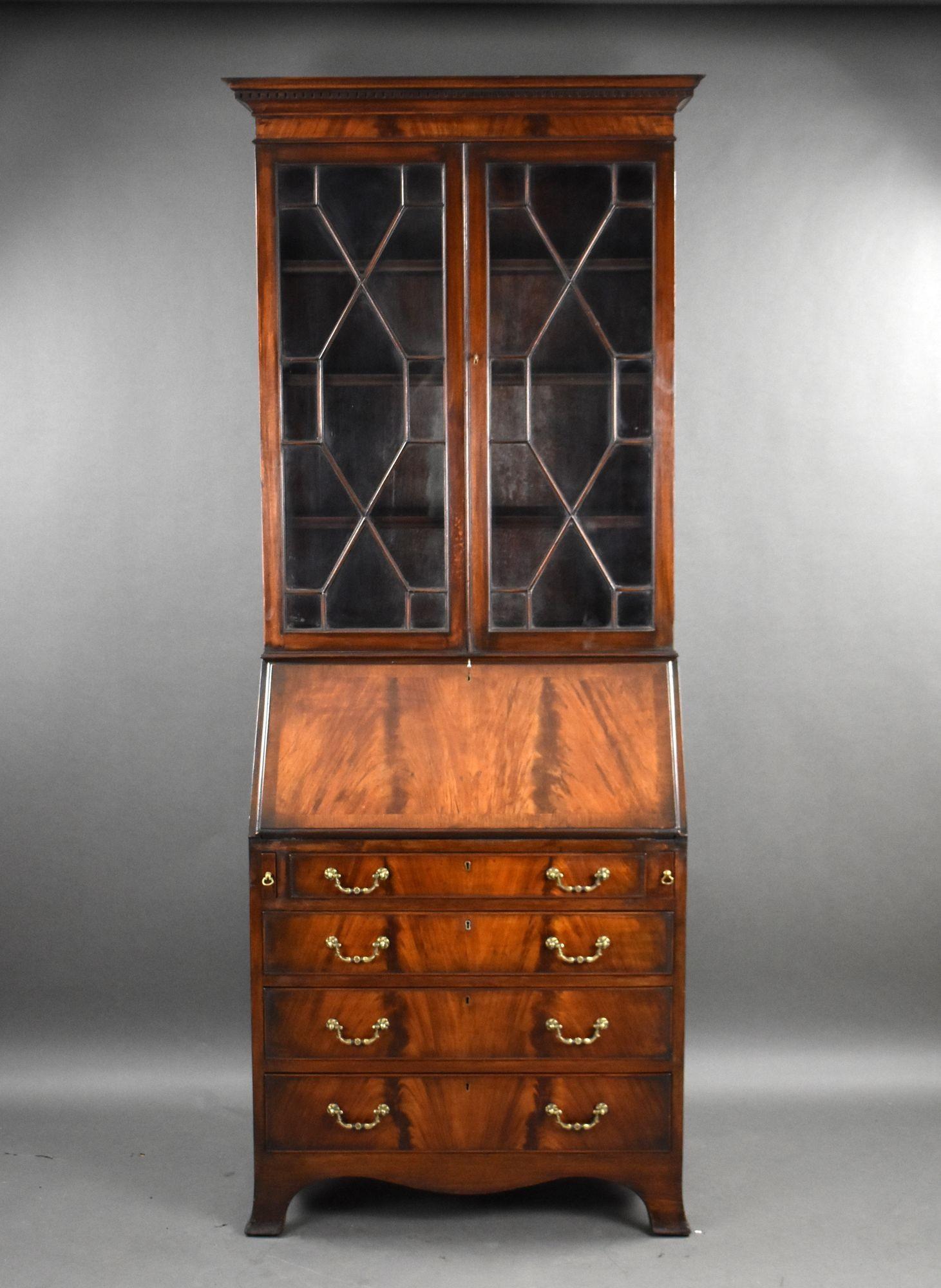 Antique Flame Mahogany Bureau Bookcase
