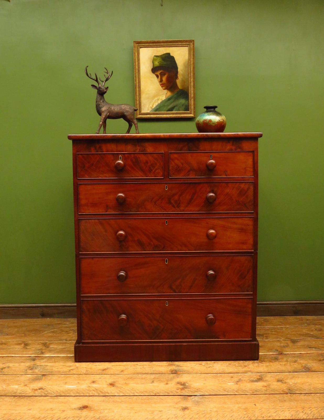Antique Flame Mahogany Chest on Chest of Drawers, Country House Chest, 2 Parts