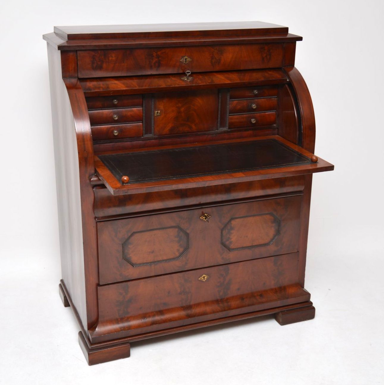 Antique Flame Mahogany Cylinder Top Bureau (1 of 12)