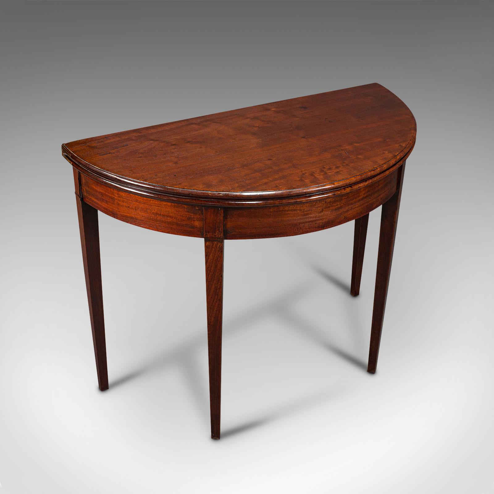 Antique Folding Tea Table, English, Mahogany, Side, Demi Lune, Georgian c.1800