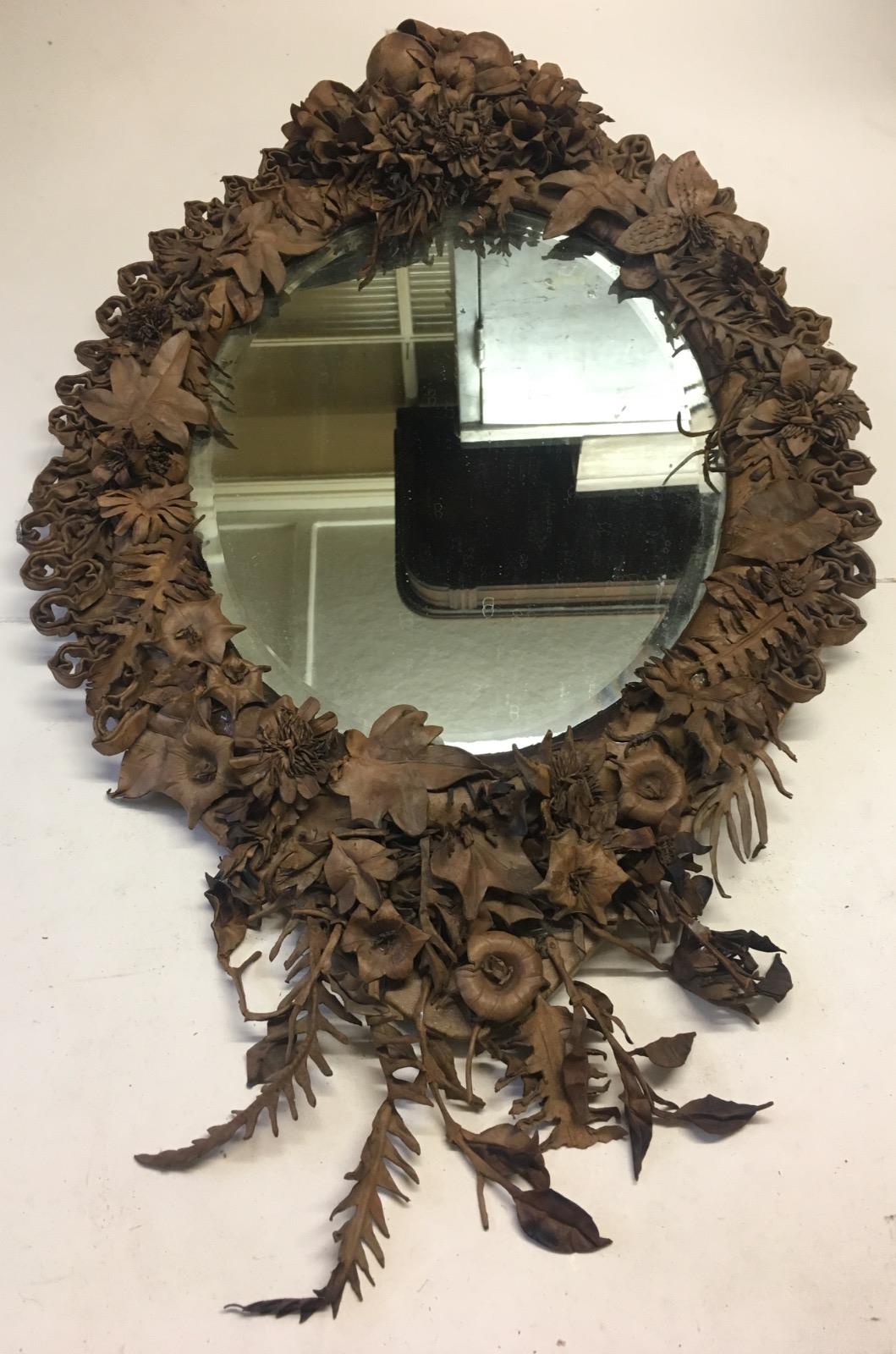 Antique Folk Art Leather Covered Mirror (1 of 1)