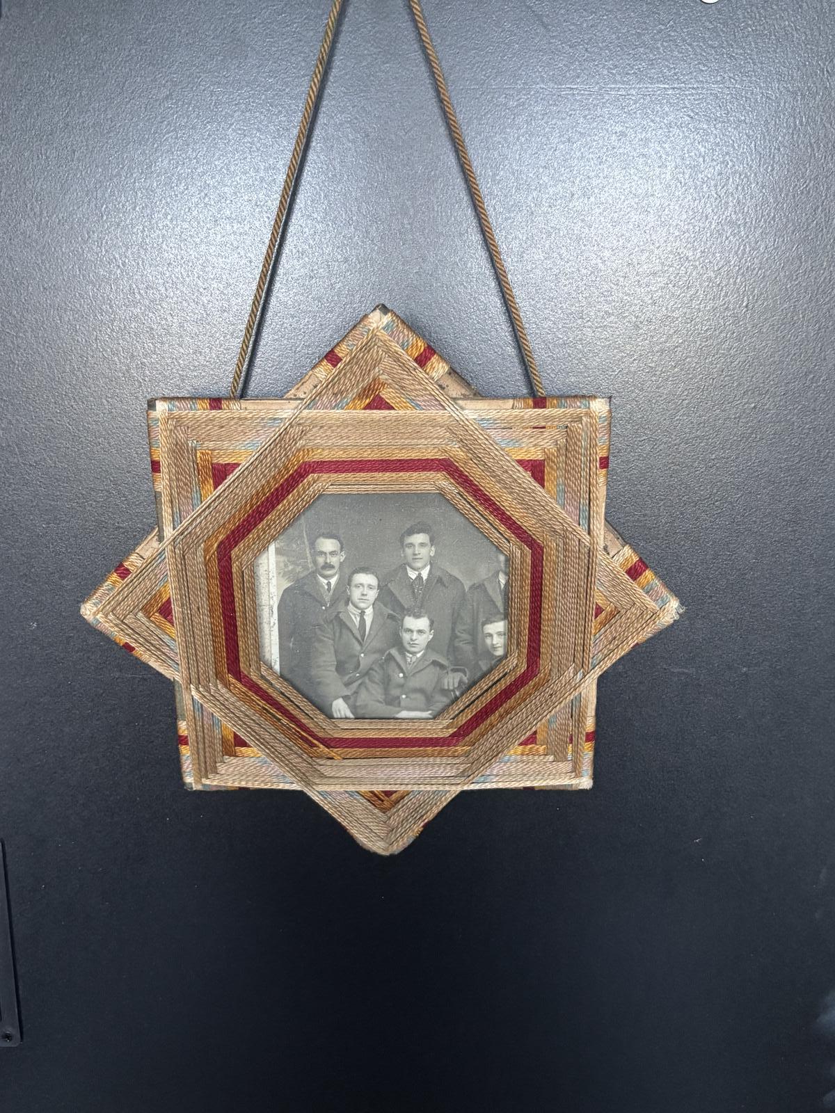 Antique Folk Art String Photo Picture Frame Octagram Star Shape C1920’s Post WWI