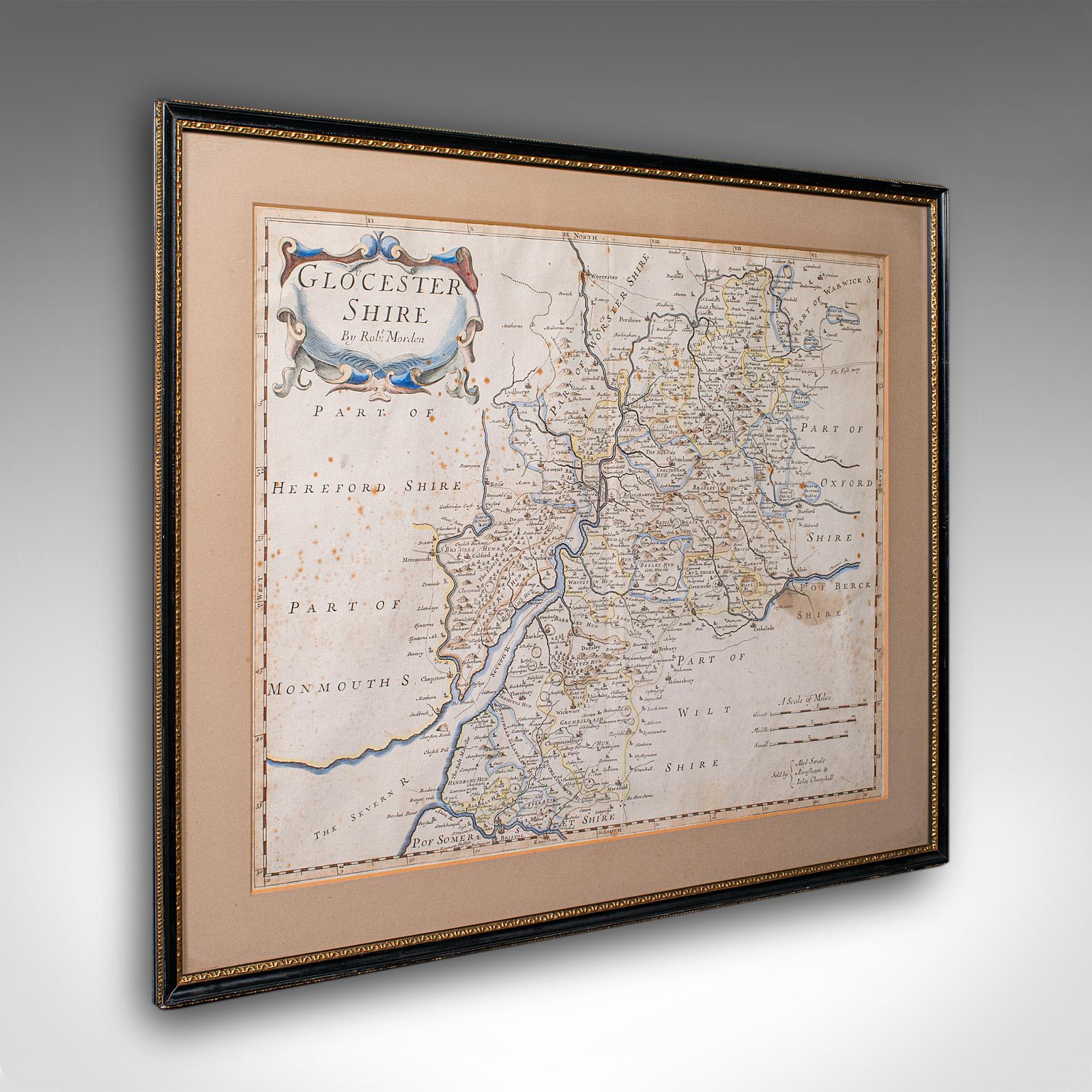 Antique Framed Gloucestershire Map, English Atlas Engraving, Cartography, C.1700