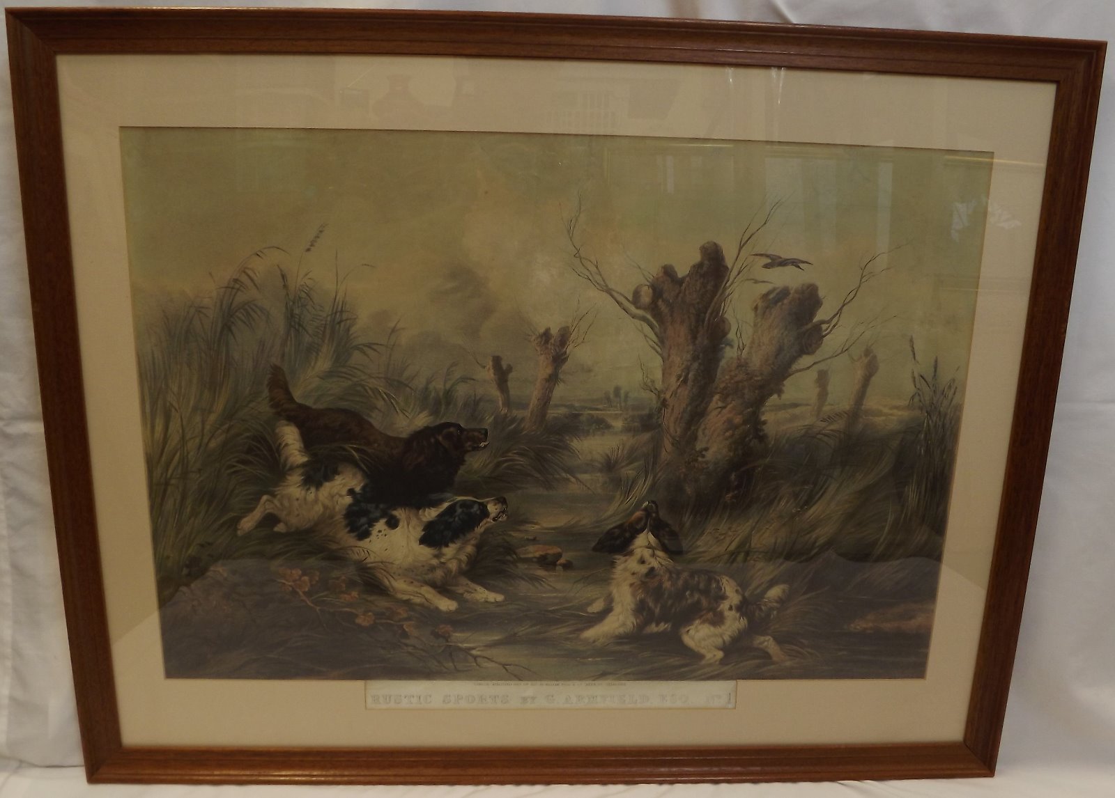 Antique Framed Lithograph by Trask After George Armfield 'Rustic Sports No.1'