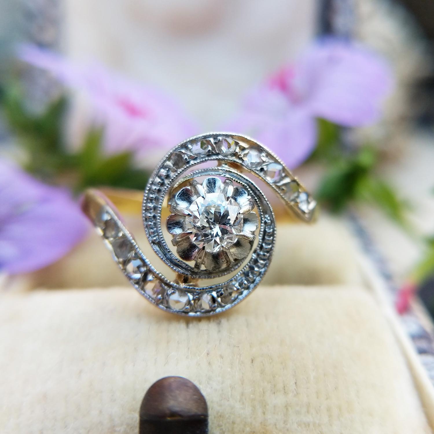 Antique French 18ct Gold Diamond Tourbillon Ring