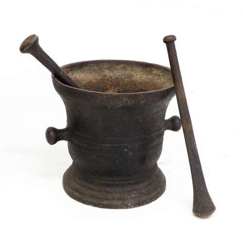 Antique French 18th Century Metal Pestle & Mortar of Grand Scale