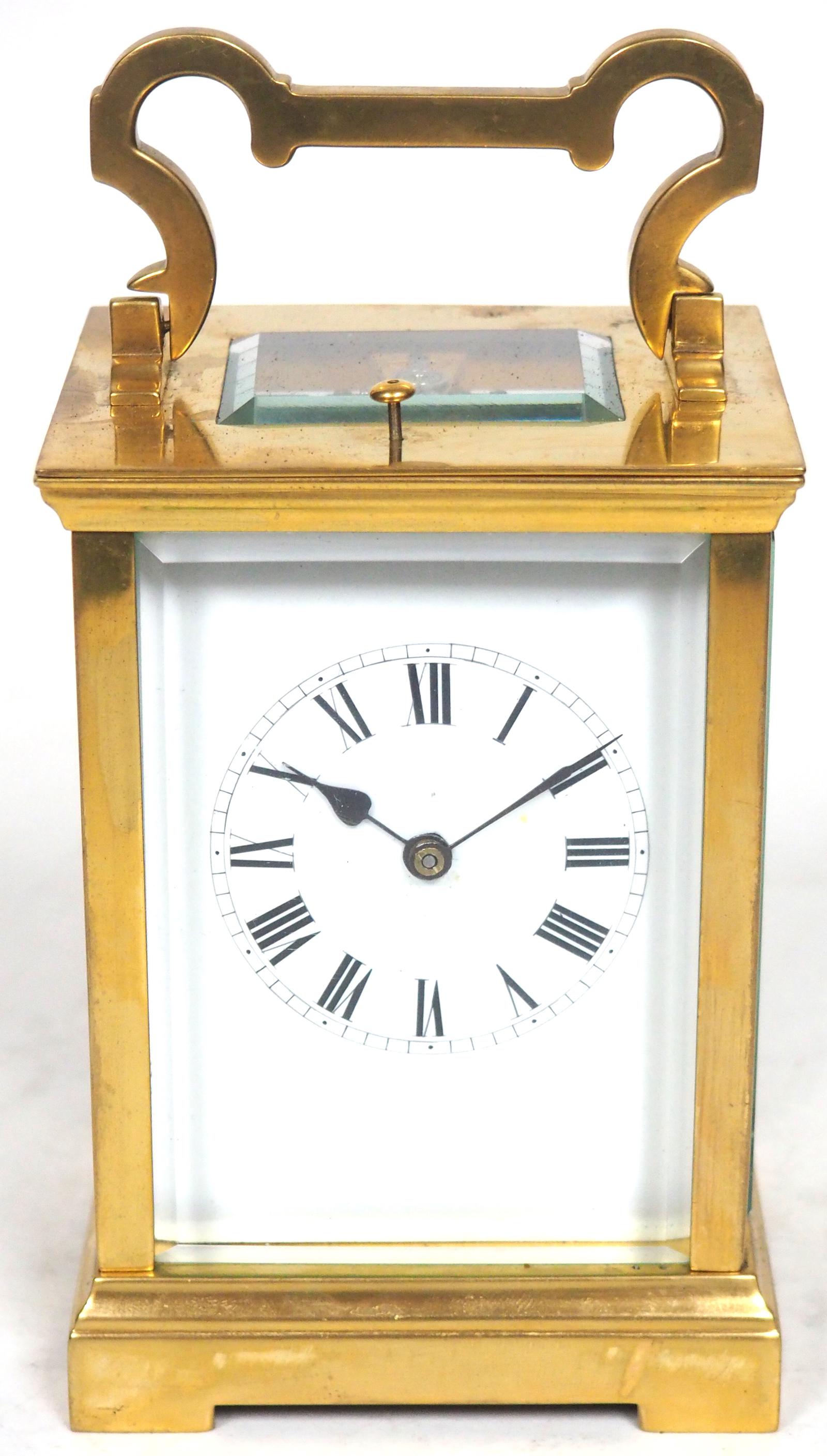 Antique French 8-Day Repeat Carriage Clock Bevelled Case with Enamel Dial  Gong Striking (1 of 5)