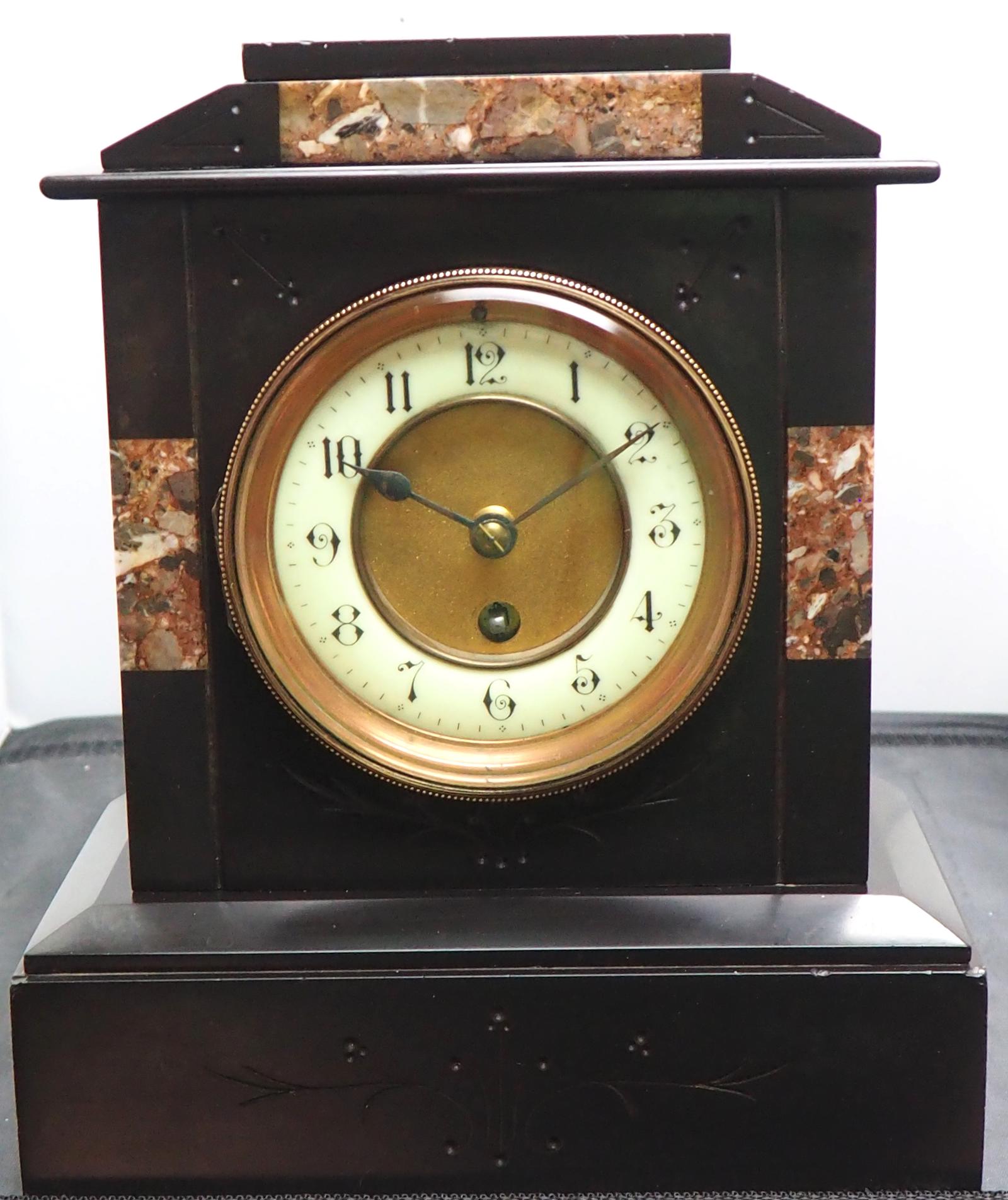 Antique French 8-day Slate Mantel Clock – Timepiece Clock with Marble Inlay