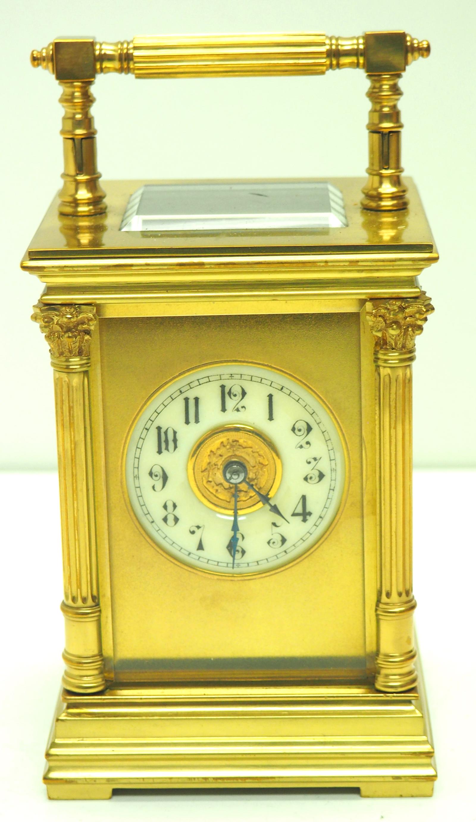 Antique French 8-day Striking Carriage Clock – Cap Corinthian Column Case with Fine Masked Enamel Dial