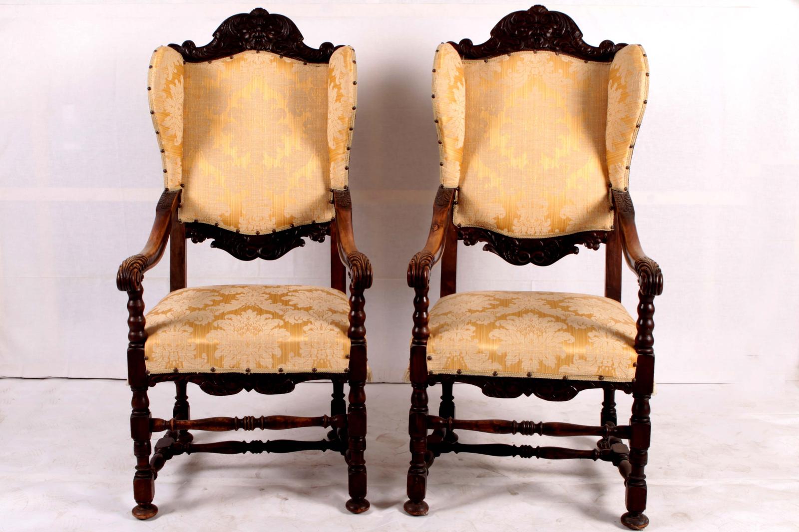 Antique French Armchairs from the 19th Century in Carved and Upholstered Oak