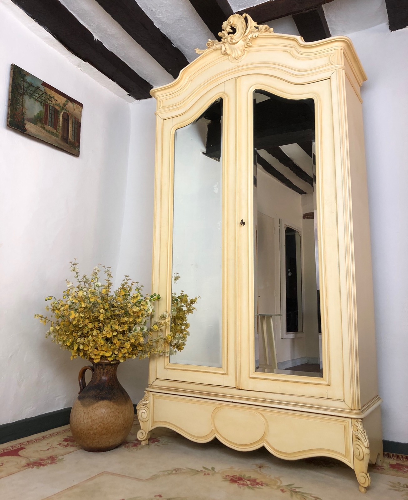 Antique French Armoire Wardrobe Painted in Dusty Yellow