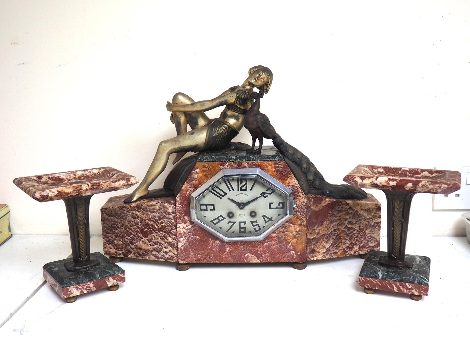 Antique French Art Deco Marble Mantel Clock – Lady Figural 8-day Mantle Clock (1 of 11)