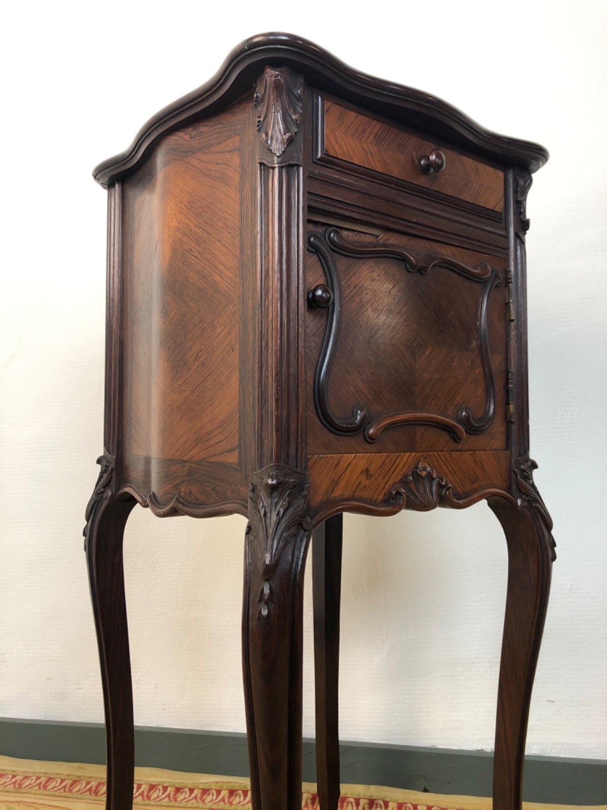 Antique French Bedside Cabinet Bombe Style Marble Top Walnut Pot Cupboard
