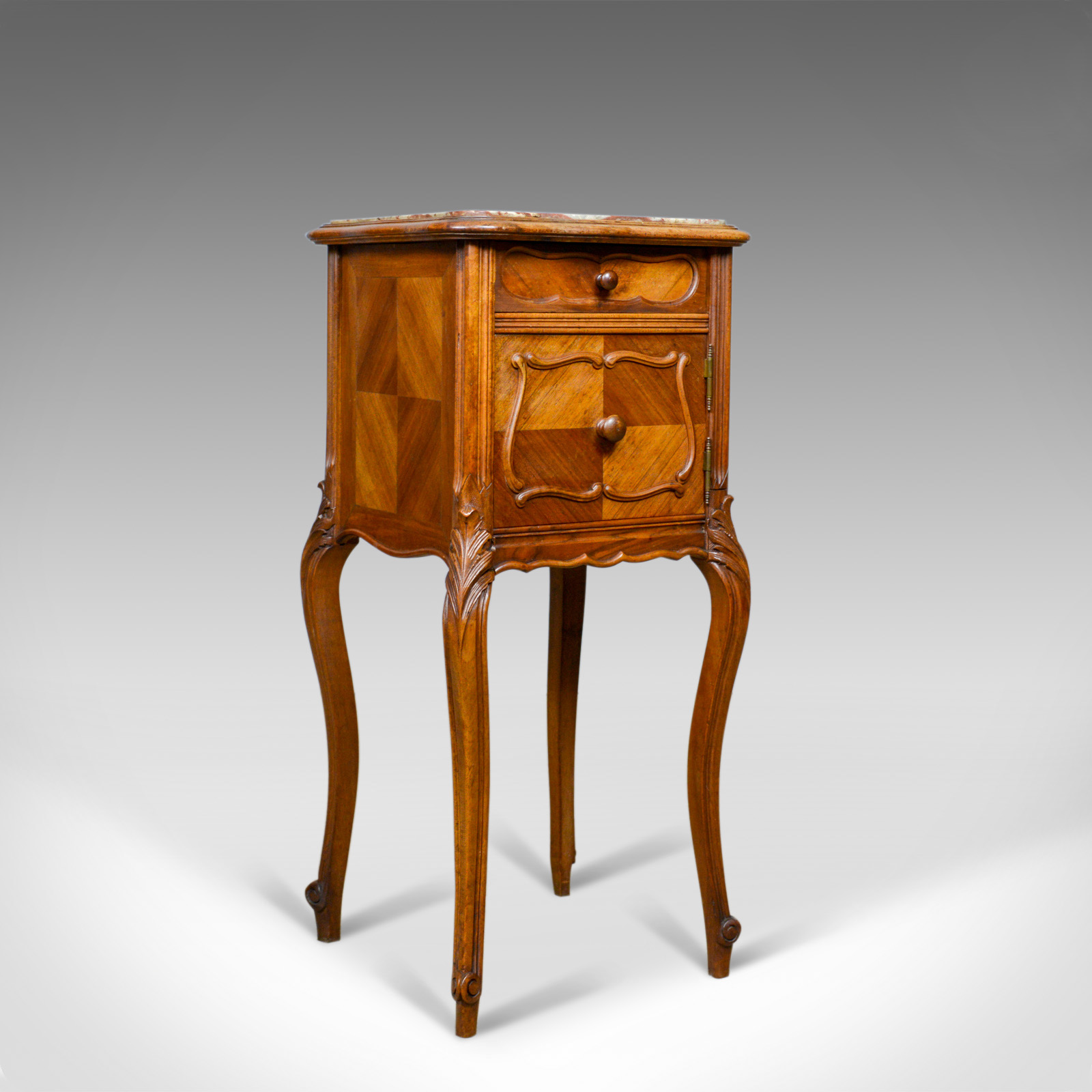 Antique French Bedside Cabinet, Victorian, Walnut, Marble, Pot Cupboard, c.1890