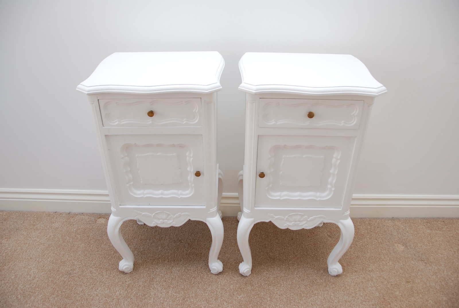 Antique French Bedside Table Cabinet White 1 Drawer Cupboard