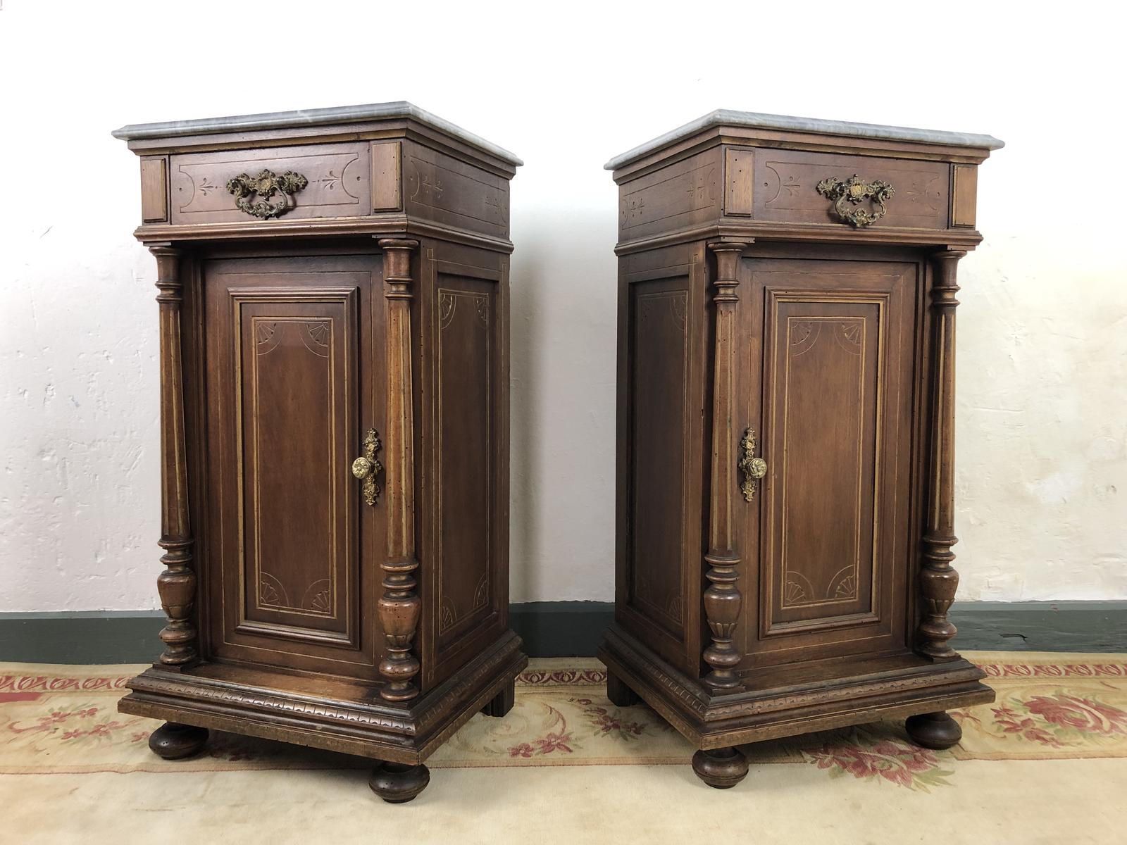 Antique French Bedside Tables Cabinets with Marble Tops