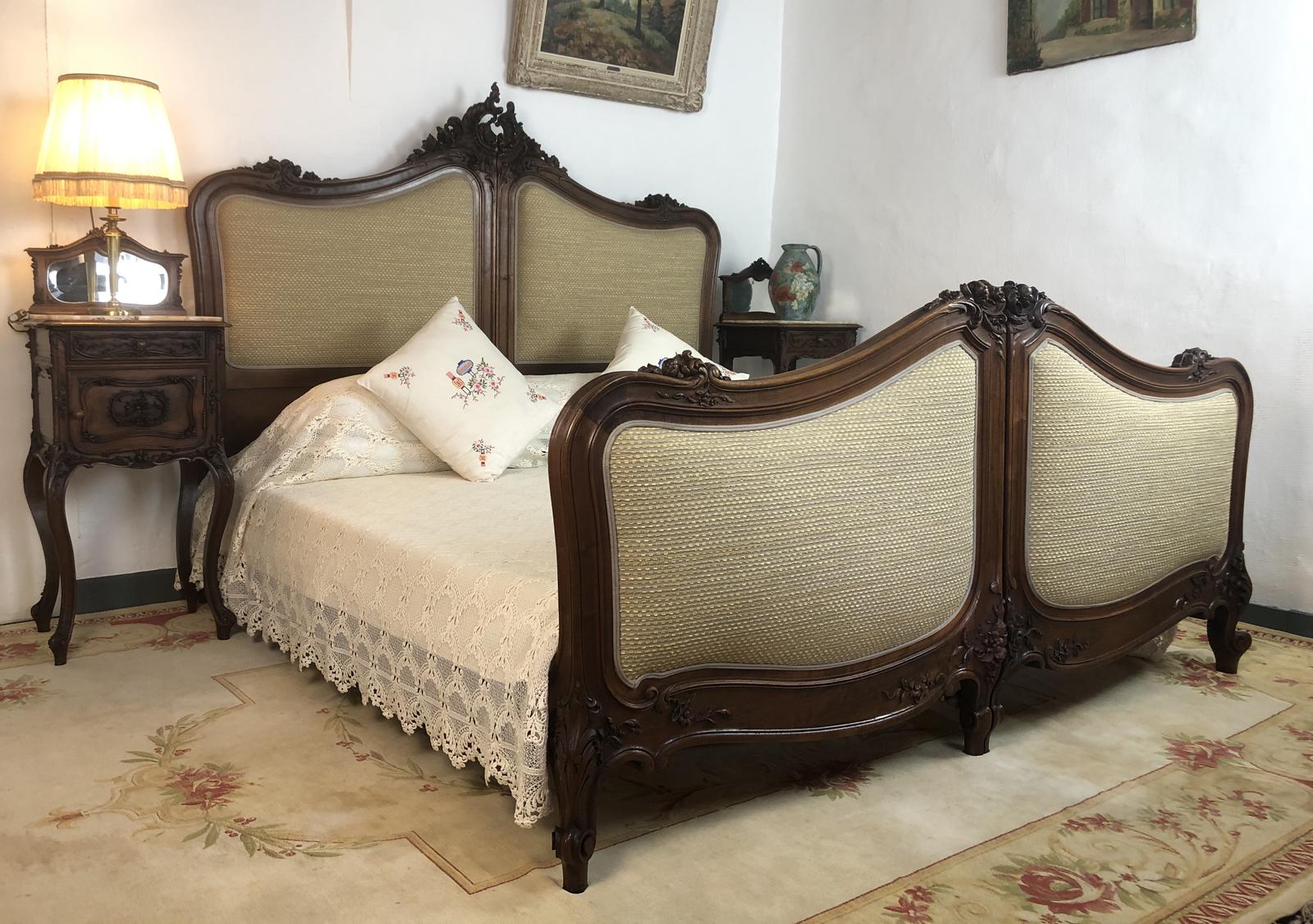 Antique French Bespoke Carved & Upholstered Extra Large Bed Frame