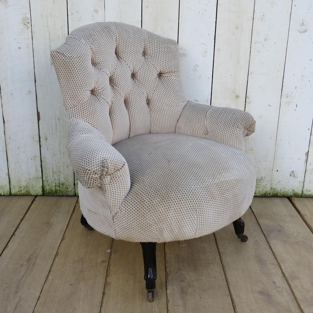 Antique French Boudior Napoleon III Tub Chair For Upholstery