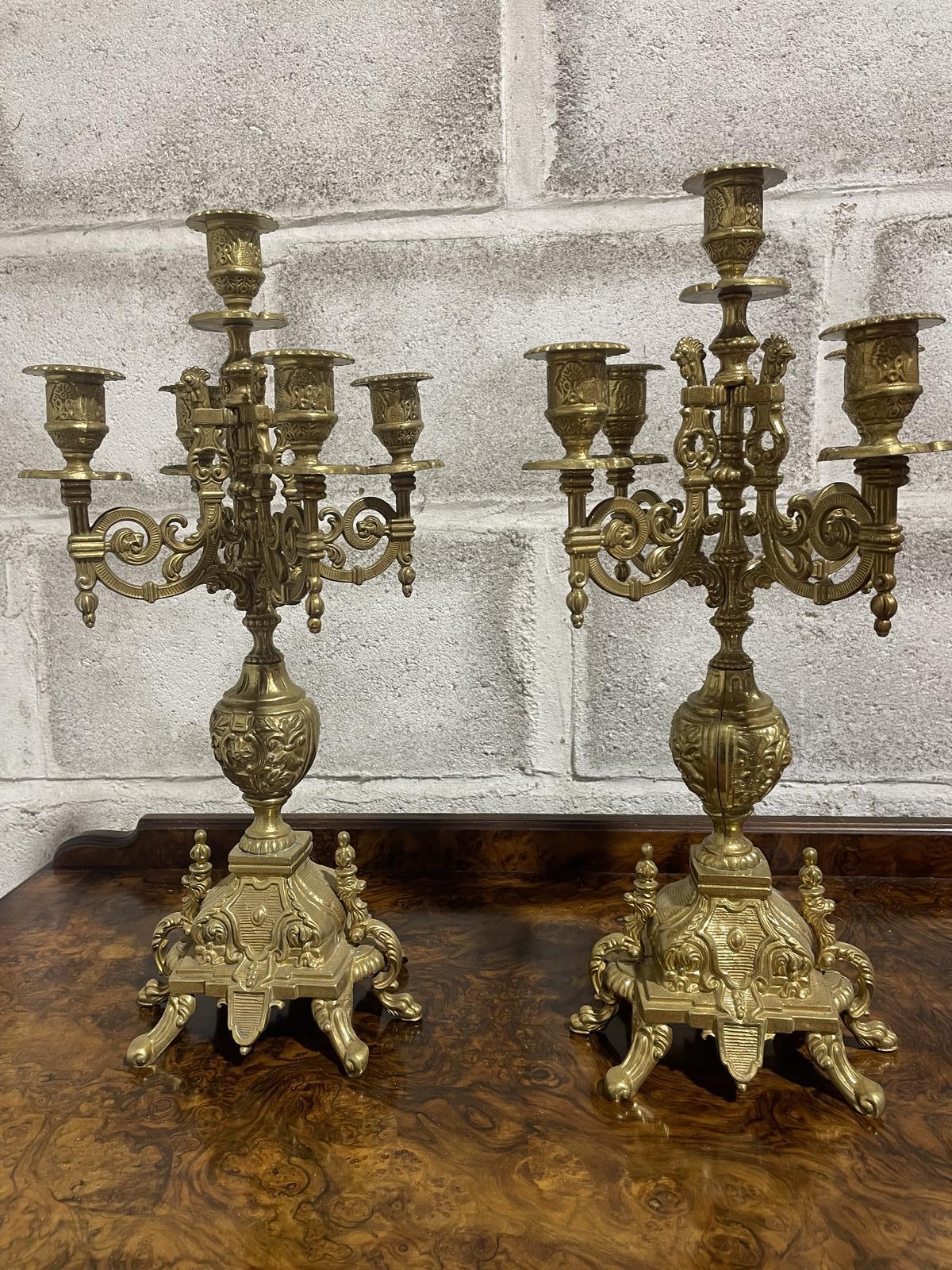 Antique French Brass Ortolans 4 Branch Candelabra Candle Stick Holders