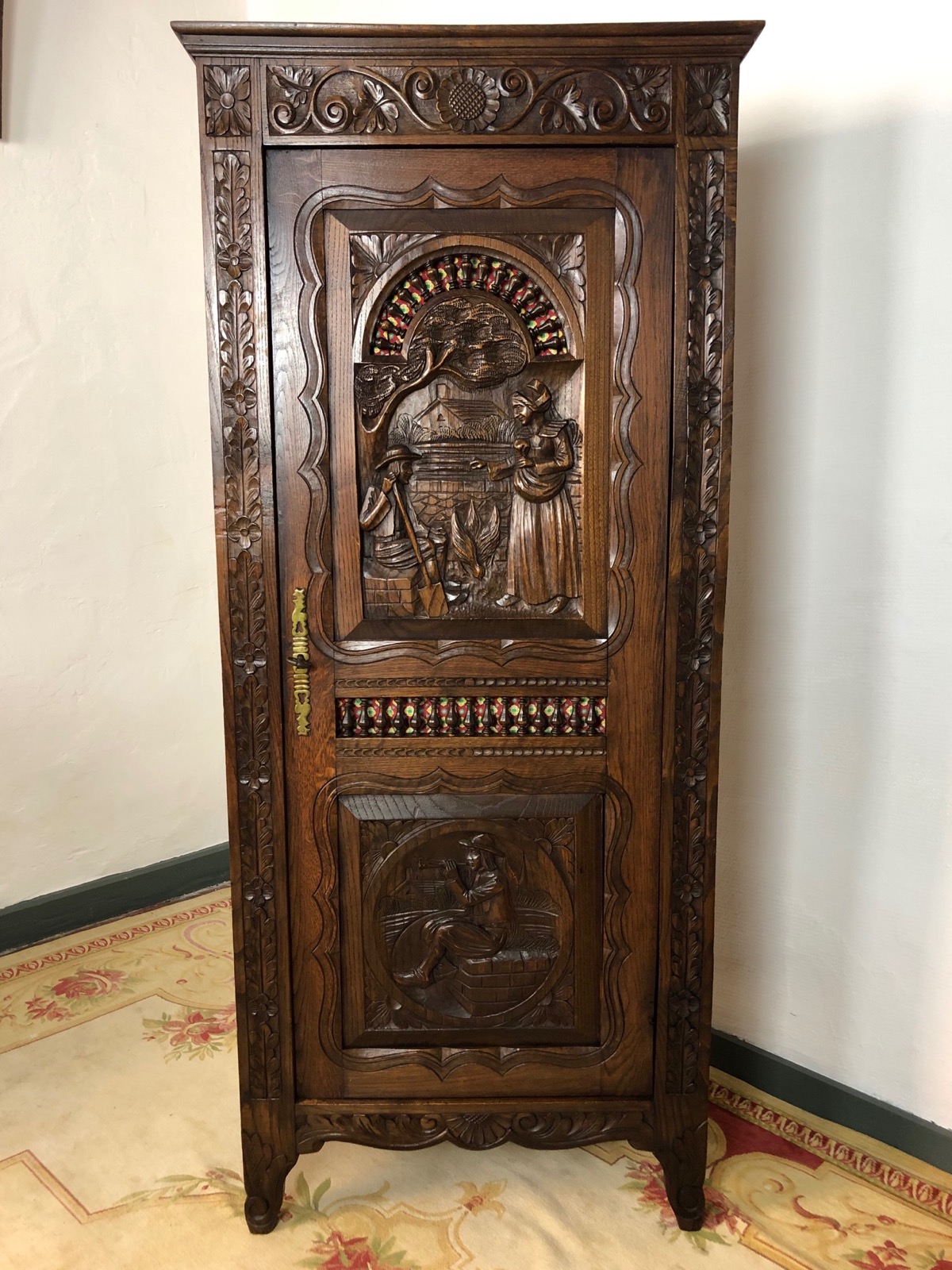 Antique French Breton Bonnetière Petite Linen Hall Cupboard