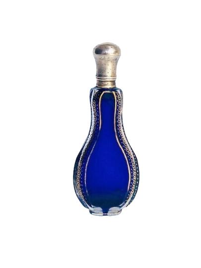 Antique French Bristol Blue & Gilt Perfume Scent Bottle Silver Gilt Lid c.1880