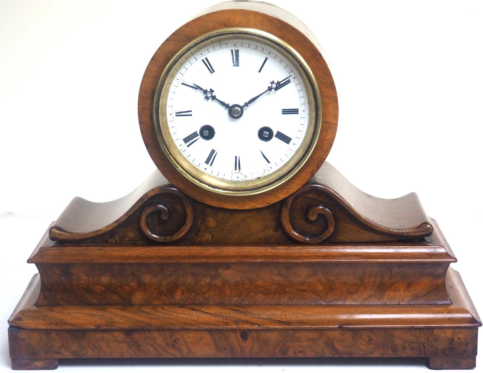 Antique French Burr Walnut Mantel Clock Wow! Drum Head Case (1 of 11)