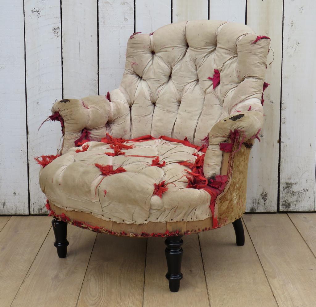 Antique French Button Back Chair For Re-upholstery