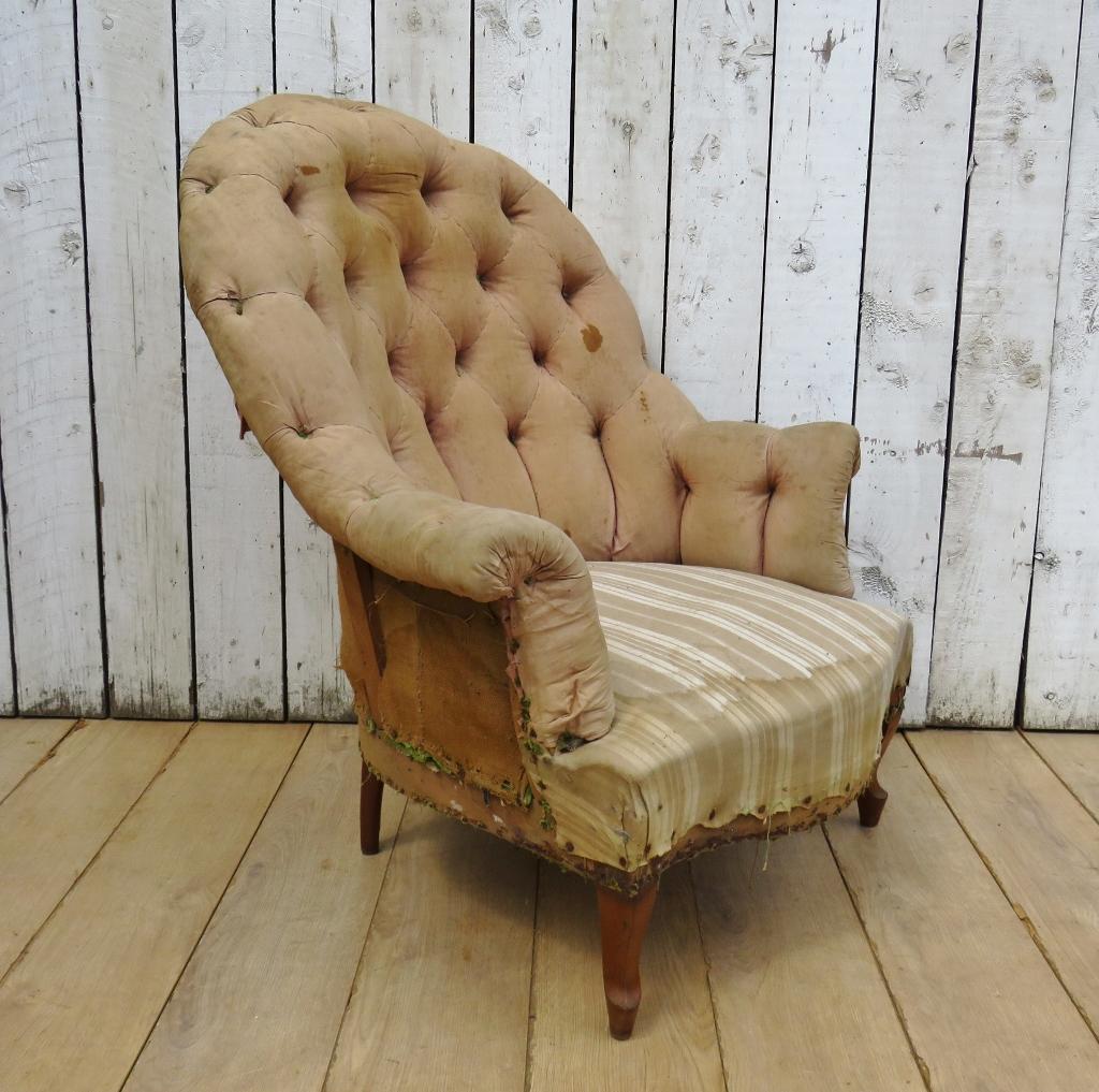 Antique French Button Back Napoleon III Armchair