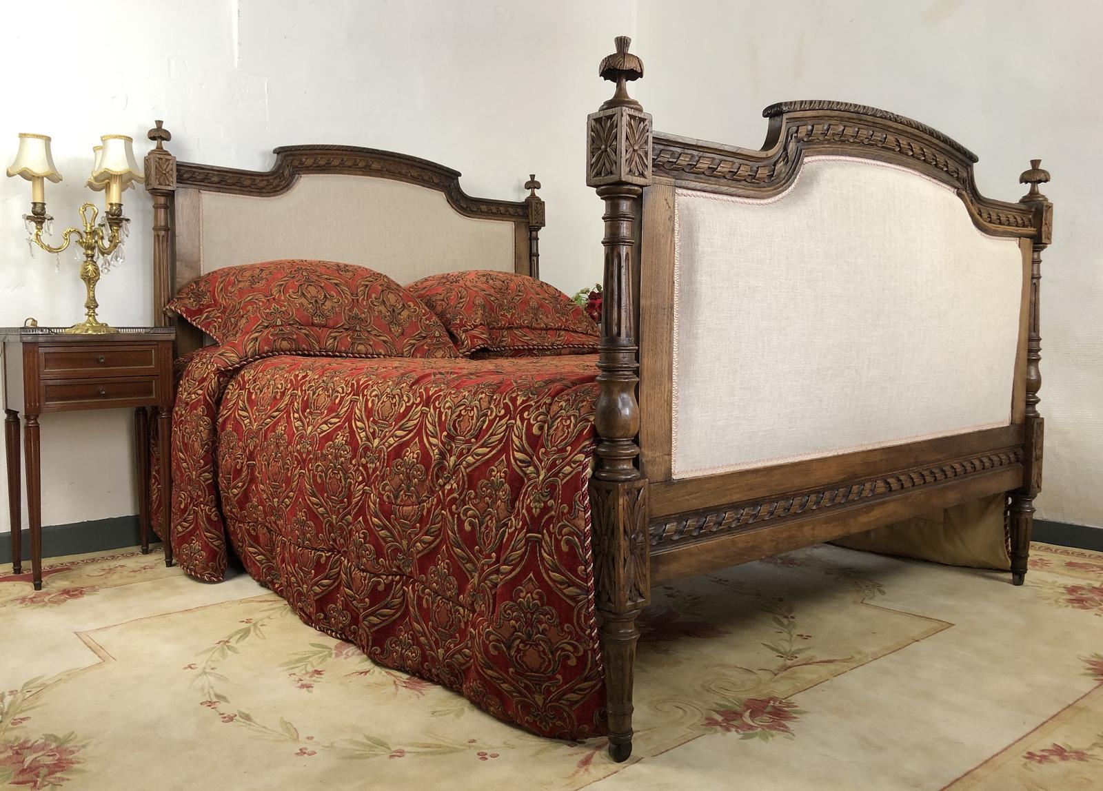 Antique French Capitonnée Bed Frame Carved Solid Oak