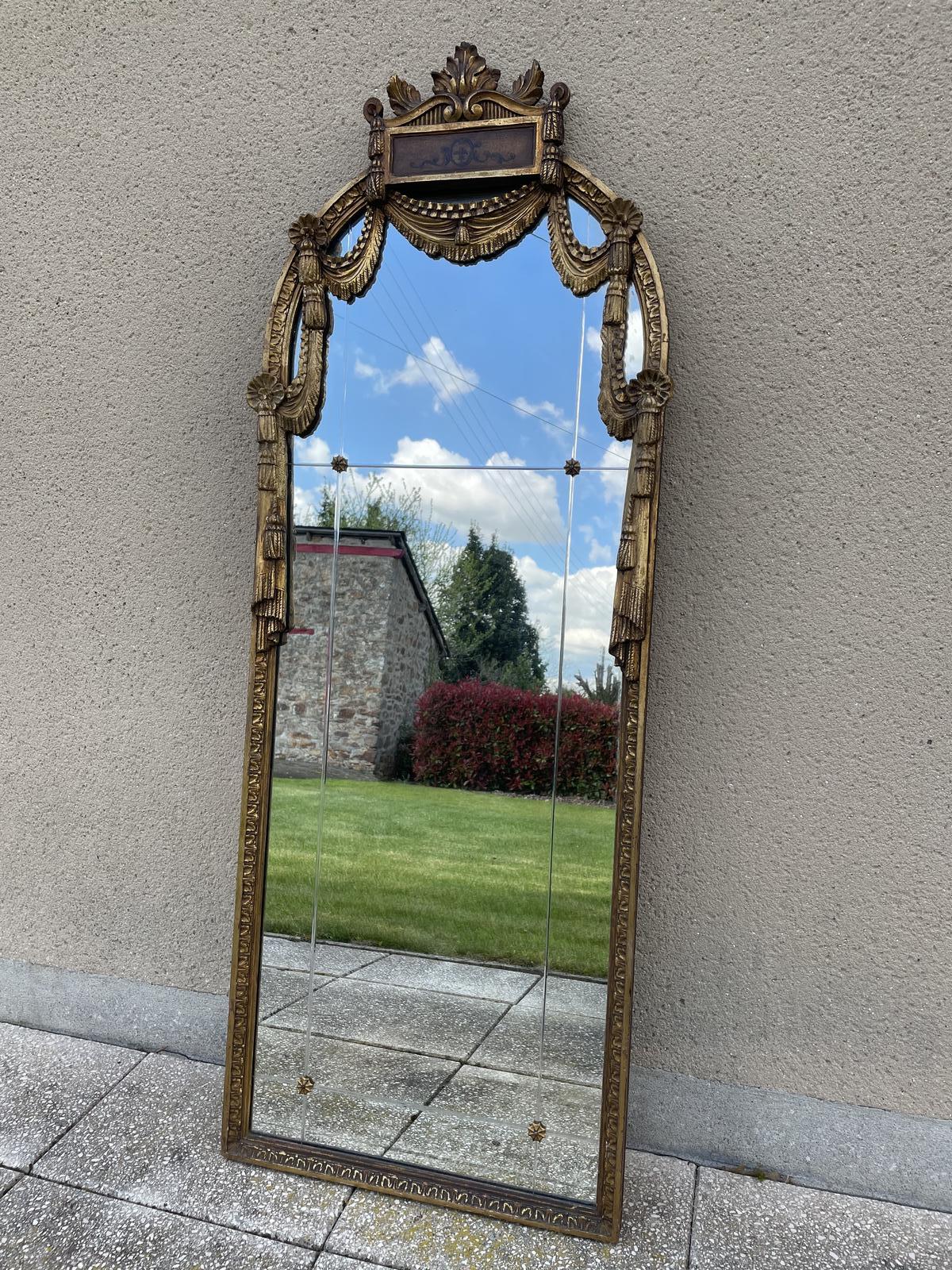 Antique French Carved Giltwood Pier Mirror Rococo Style with Swag Detail