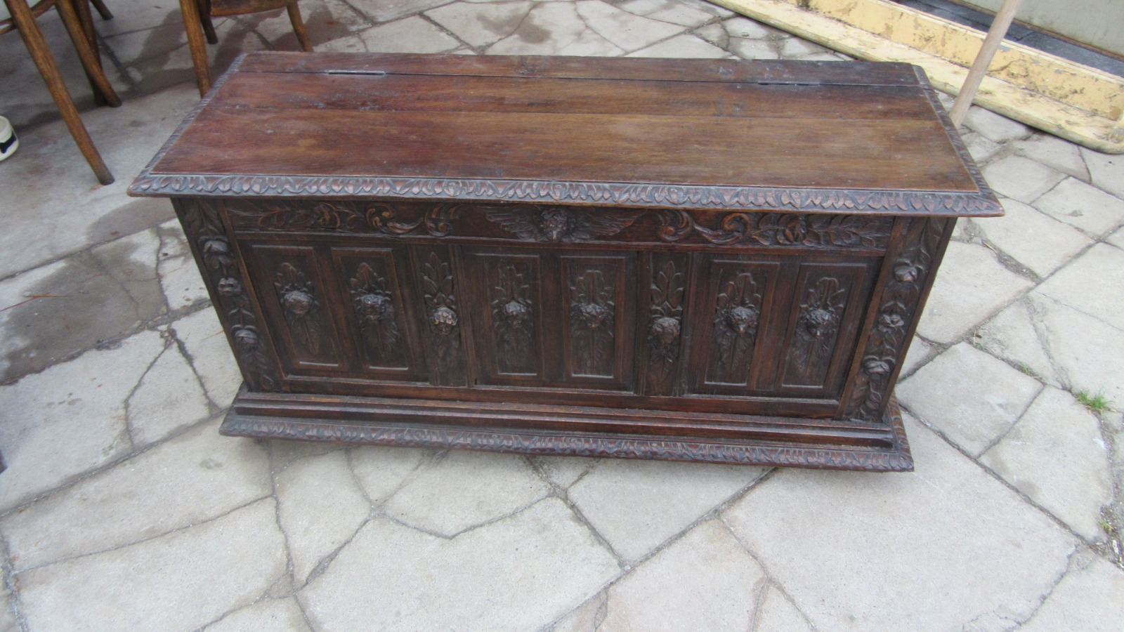 Antique French Carved Oak Coffer c.1860