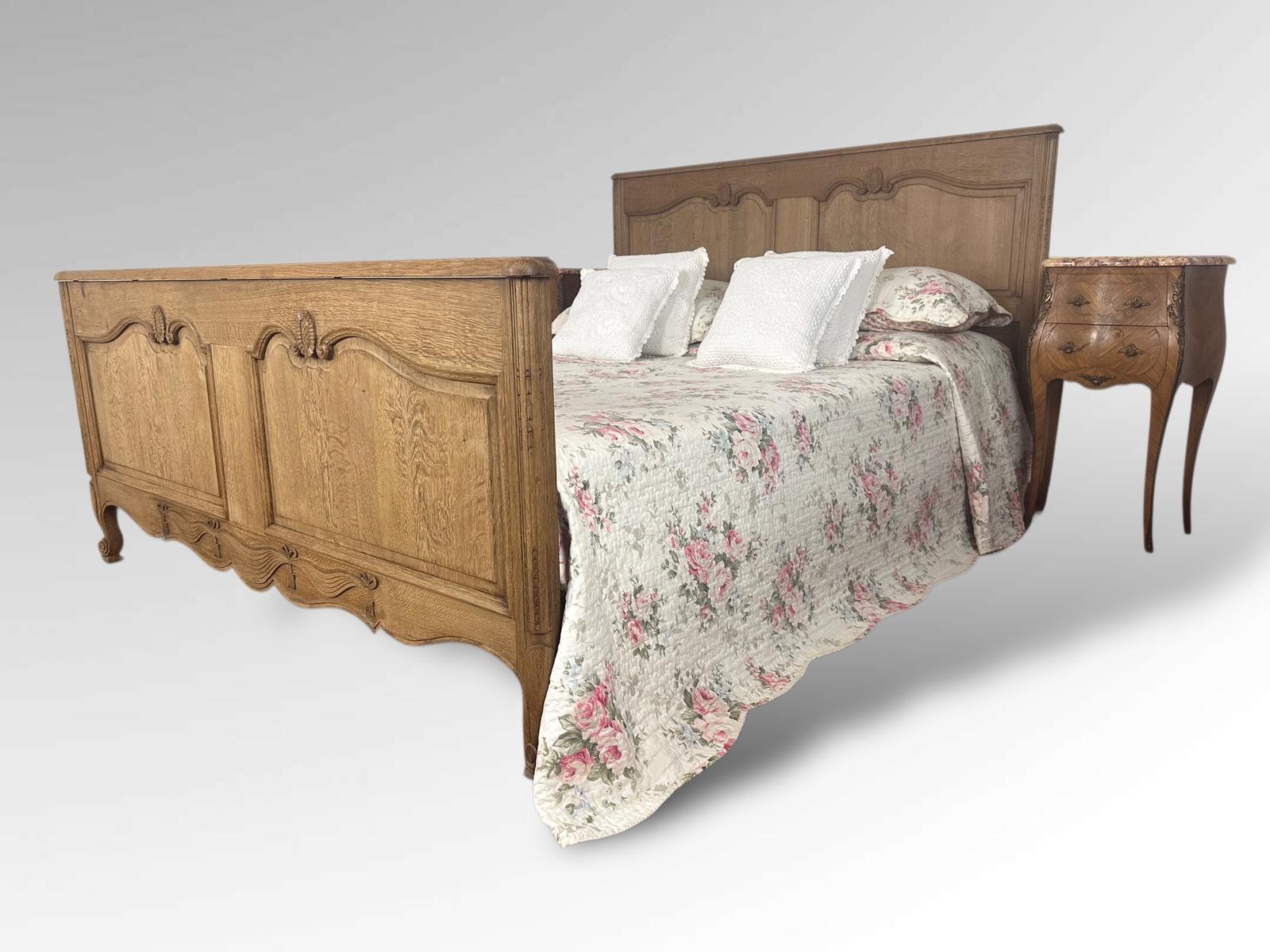Antique French Carved Oak Double Bed Frame Sandblasted Oak
