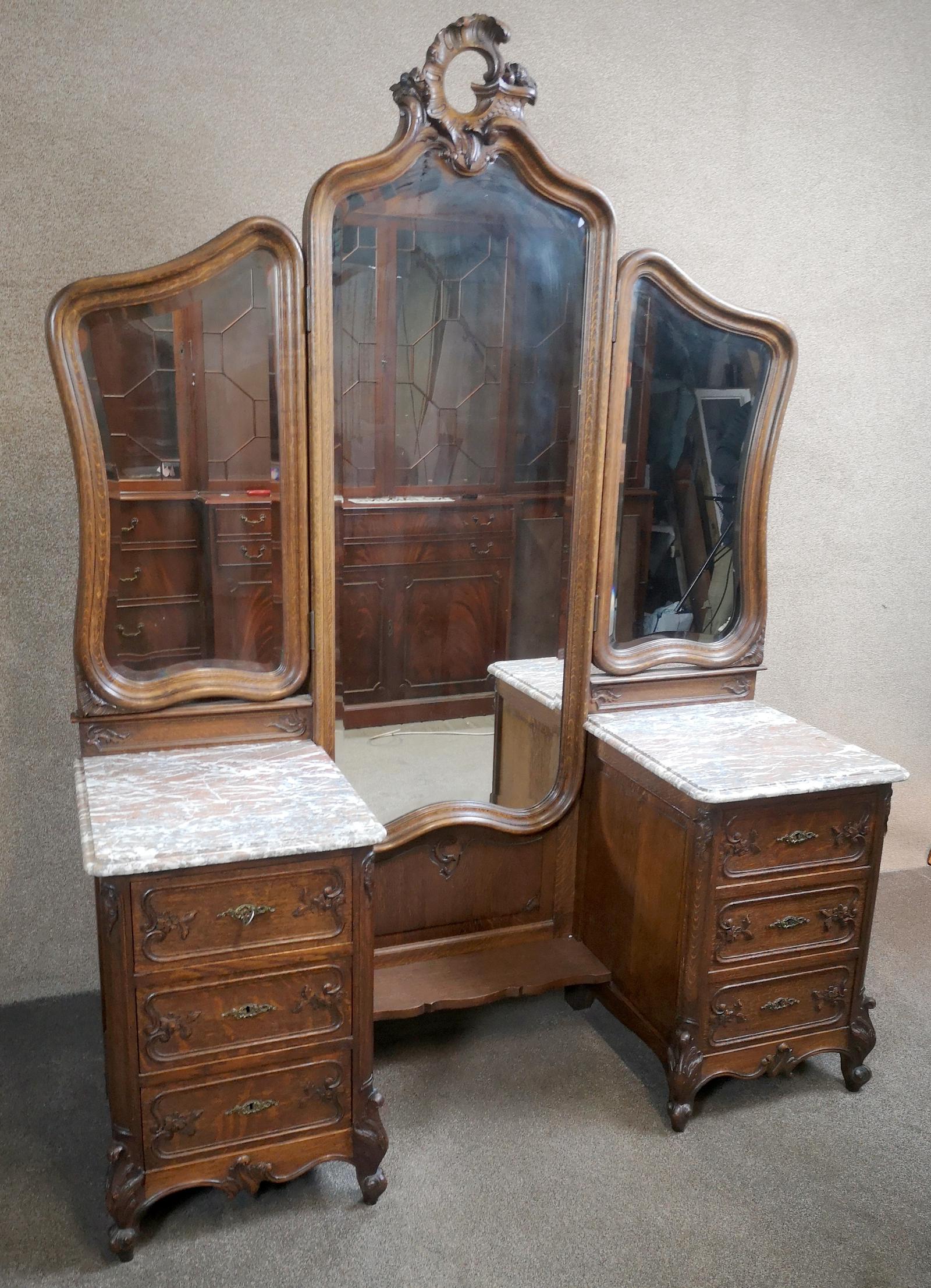 Antique French Carved Oak & Marble Top Dressing Table (1 of 13)