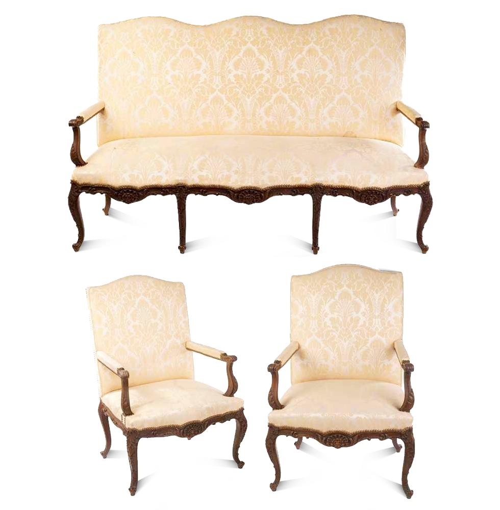 Antique French Carved Oak Salon Suite - Settee & Two Chairs