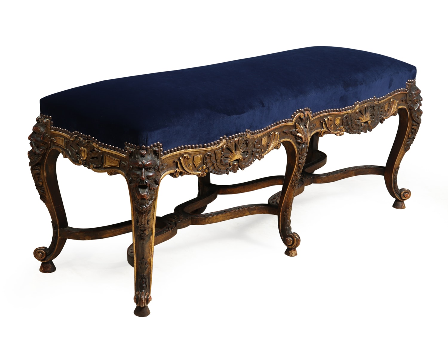 Antique French Carved & Parcel Gilt Long Stool c.1860
