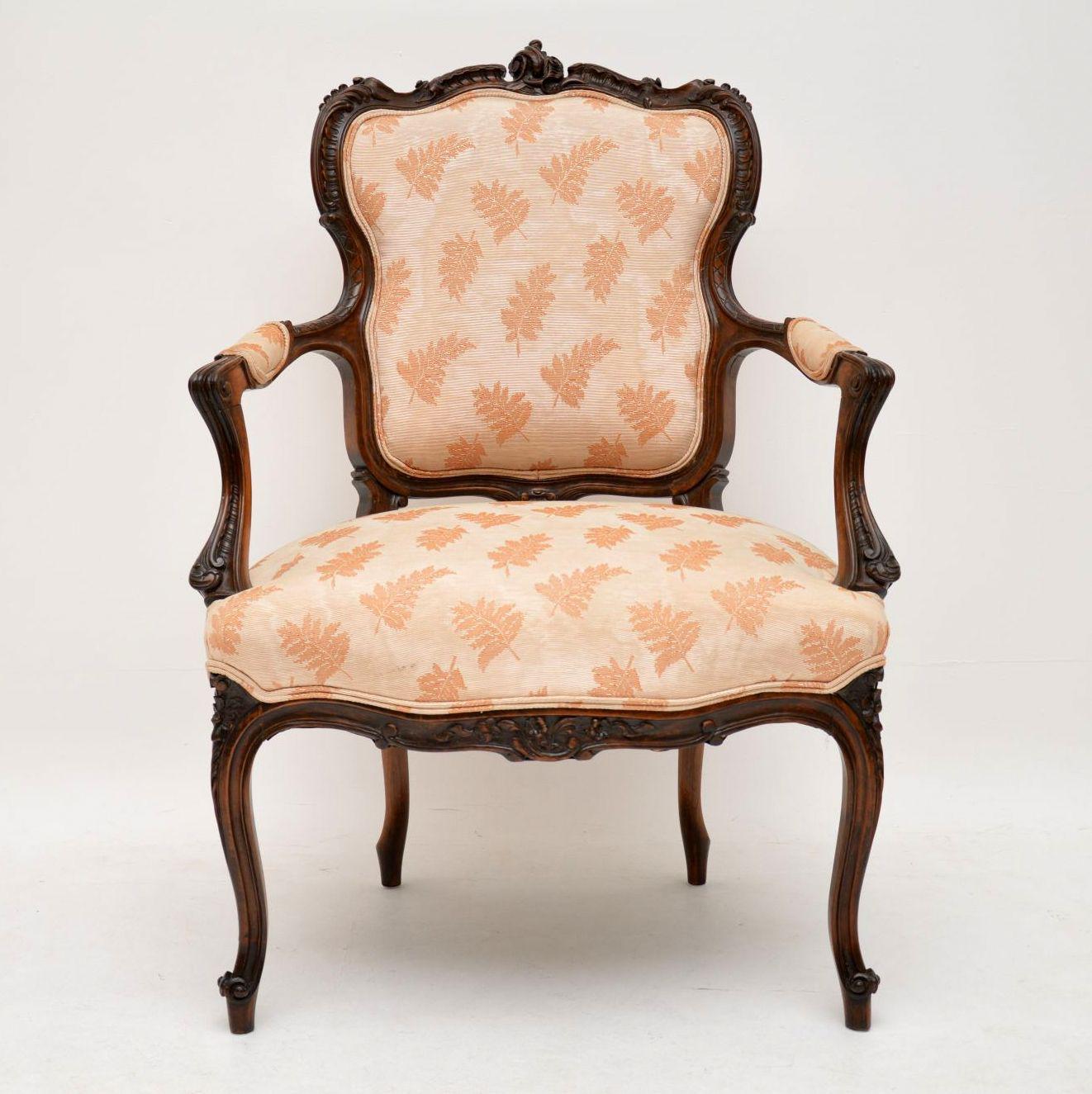 Antique French Carved Walnut Salon Armchair (1 of 10)