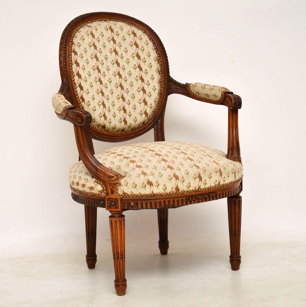 Antique French Carved  Walnut Salon Armchair (1 of 13)