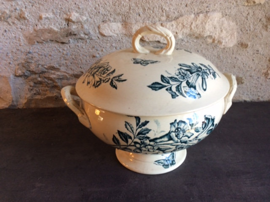 Antique French Ceramic Blue & White Transfer Printed Tureen Style Jasmin Maker Badonviller