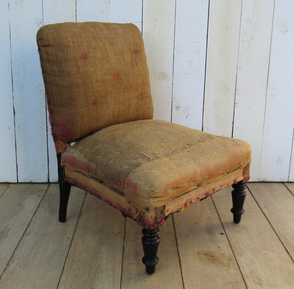 Antique French Chauffeuse Slipper Fireside Chair for Re-upholstery