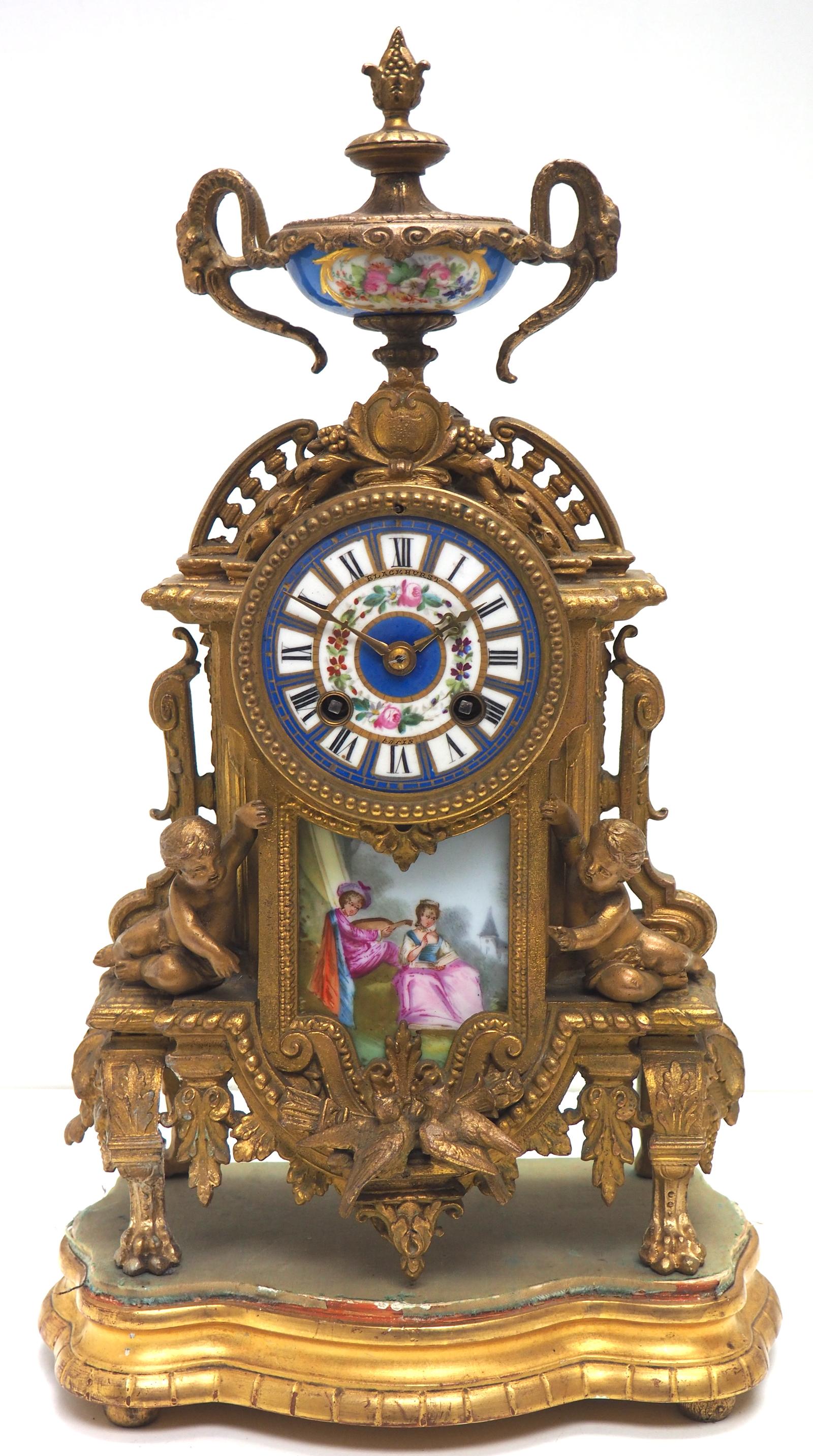 Antique French Cherub Sevres 8-day Striking Gilt Mantle Clock c.1880