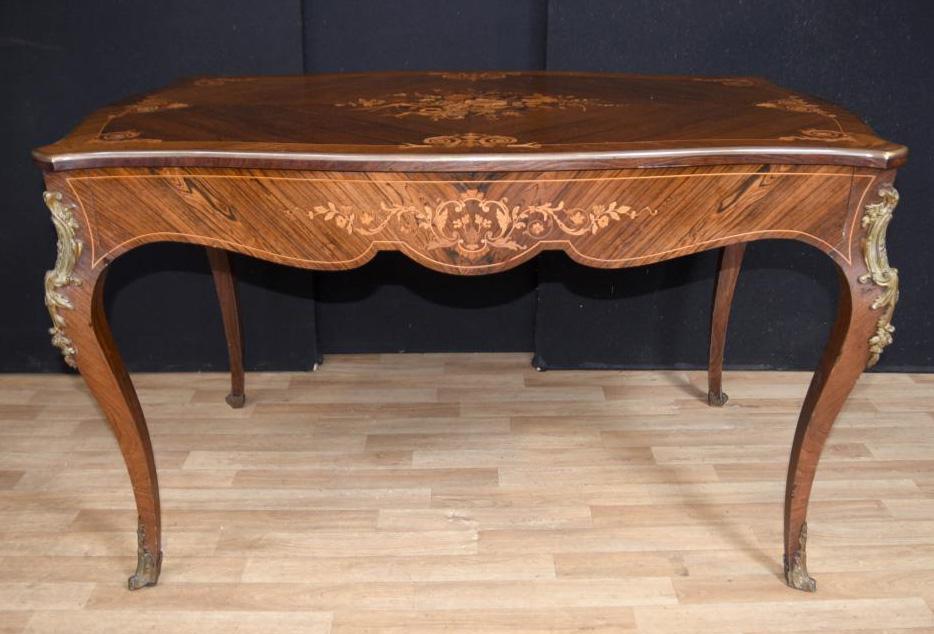 Antique French Desk - Empire Bureau Plat Library Table Marquetry Inlay