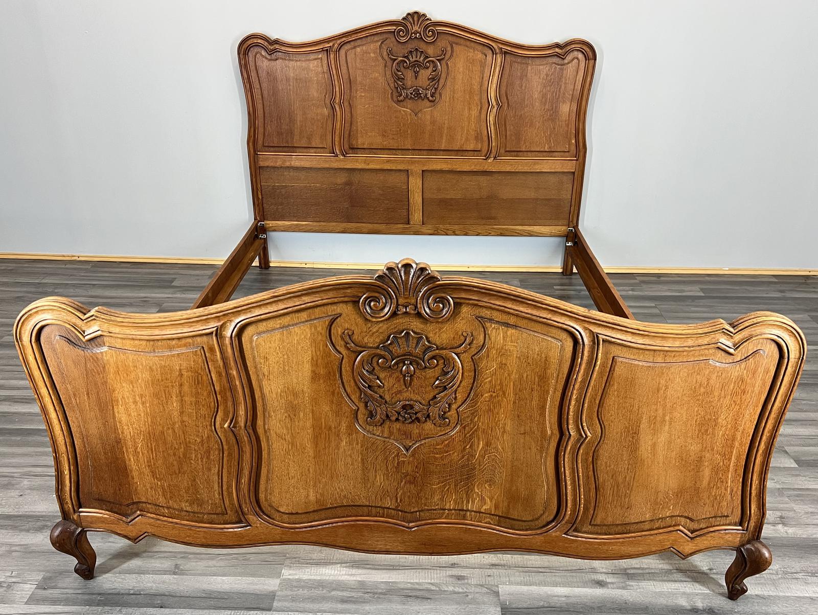 Antique French Double Bed Frame - Carved Solid Wood - Elegant Design