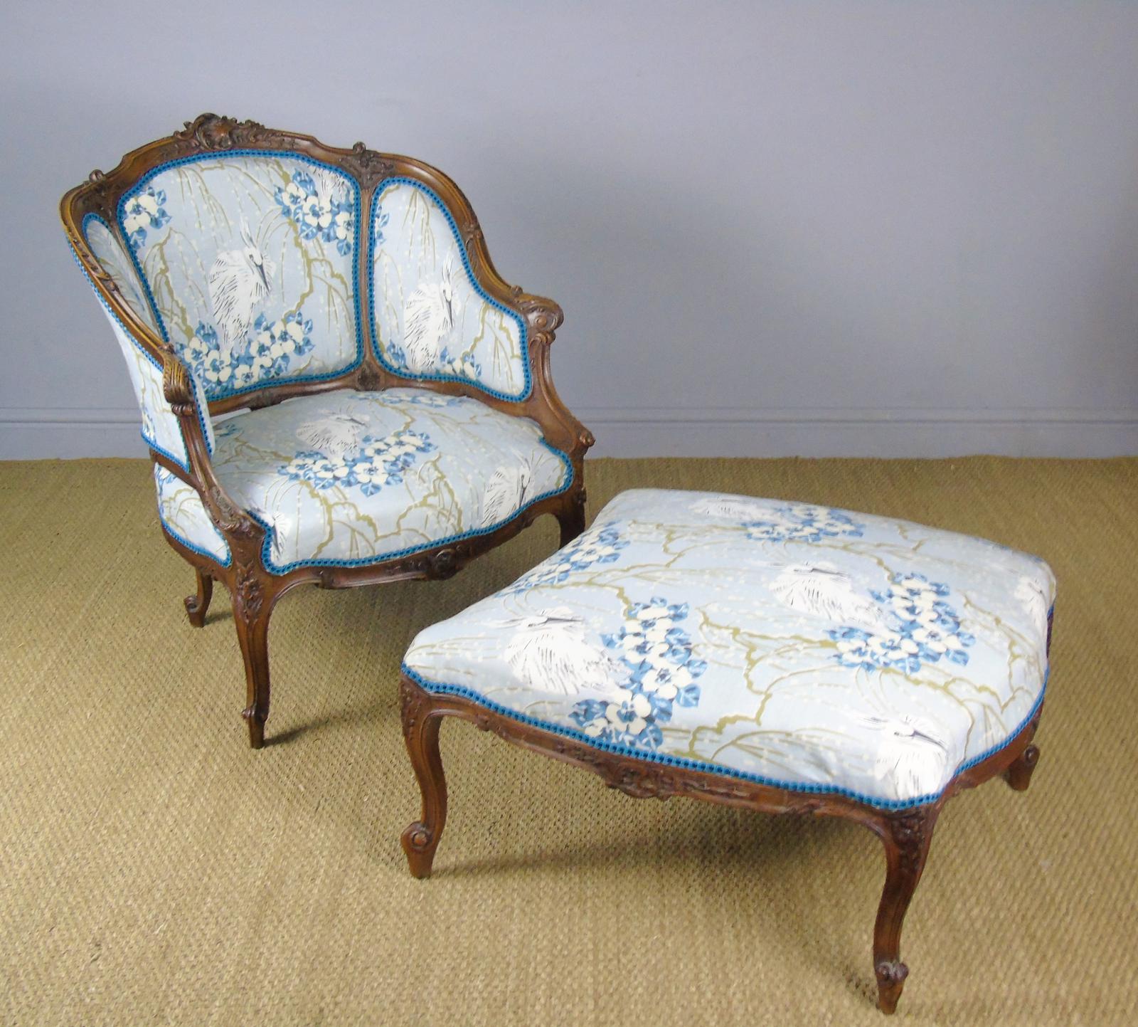 Antique French Duchess Brisee Chair & Stool Louis XV Style